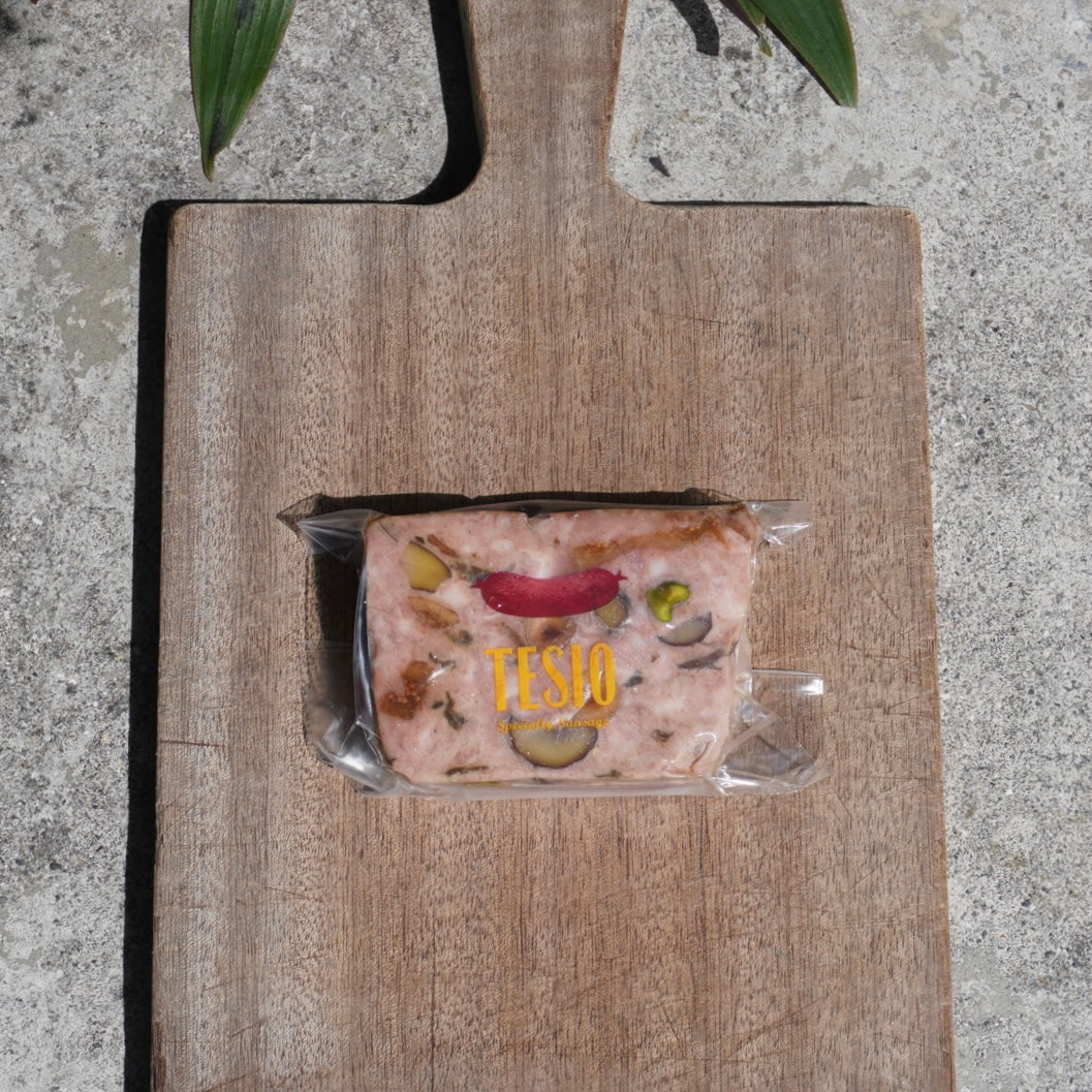 豚肉(沖縄県産)、豚レバー、牛肉(オーストラリア産)、かぼちゃ、たけのこ、栗、しいたけ、ポルチーニ茸、ナッツ、イチヂク、食塩、砂糖、香辛料/リン酸塩(Na,K)、調味料(アミノ酸等)、酸化防止剤(VC)、発色剤(亜硝酸Na)